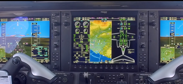 Der Phenom 100 ist mit einem Embraer Prodigy 100 Flight Deck von Garmin ausgestattet, dabei handelt es sich um ein hochmodernes Avionikpaket, das auf dem Garmin 1000 basiert. Sämtliche Funk- und Navigationssysteme sind in dieser Avionik integriert, selbstverständlich verfügt der Kleinjet auch über einen modernen Wetterradar, dieser ist im Bug eingebaut. Die gesamten Eingaben für das Prodigy 100 Flight Deck können über die Eingabeknöpfe und Drehschalter am Bildschirm gemacht werden, zusätzlich steht eine kleine Eingabeeinheit mit alphabetischer Tastatur zur Verfügung. Die Avionik lässt für die Piloten des Phenom 100 keine Wünsche offen. Der Autopilot kann auf das Flugsteuerungssystem (Flight Director System) aufgeschaltet werden, dieses beherrscht laterale sowie vertikale Flugrichtungseingaben. Die Eingaben können über eine Kontroll- und Steuereinheit angewählt werden.