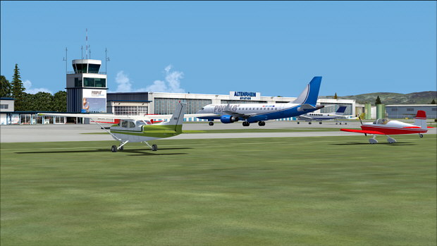 Das Add-On \"Altenrhein X\" ist als BOX- oder Download-Version für CHF 34.90 erhältlich. Diese Szenerie ist eine komplette Neuentwicklung von Remo Eugster & Marc Läderach. Auf Basis von über 2000 Fotos schufen sie mit 3dStudio Max eine vollständige Wiedergabe des Flugplatzes sowie markanter Bauten der Umgebung wie die Stadler-Rail oder der Altenrhein-Park mit originalgetreuen Texturen. Die Beleuchtung einschliesslich der Anflugbefeuerung ist ebenfalls vollständig vorhanden. Die Luftaufnahmen mit einer superfeinen Auflösung von 50cm pro Pixel fügen den Flugplatz nahtlos in die Umgebung der Switzerland Professional-Szenerie ein. Das AES-Lite Tool von Oliver Pabst bewegt die vielen Bodenfahrzeuge sowie den AI-Traffic und macht den Airport noch lebendiger. Eine Besonderheit ist der animierte Eisenbahnverkehr mit der Re460 und verschiedenen Lok-Bemalungen und sogar Funkensprung auf der Fahrleitung. Die Embraer 170 der \"People\'s Vienna Line\"-Bemalung vor dem Hangar sowie weitere statische Flugzeuge runden das grossartige visuelle Gesamterlebnis am Boden wie auch in der Luft ab.