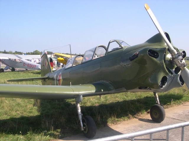 Ich gehe weiter zu den abgestellten Maschinen, die fast alle noch in die Luft gehen werden, drei Focke Wulf Fw 44 Stieglitz sehe ich, die Bücker-Familie zählt gut das Vierfache, zwei de Havilland Tiger Moth, und zwei Udet U-12 Flamingo, eine Yak-18, eine Messerschmitt M17 mit Originalmotor, sonst ein Nachbau für die Messerschmitt-Stiftung, eine eher seltene ERCO 415 D, eine Grob G109, eine Cessna Caravan, mehrere Piper pA-18, eine Zlin 526, ein Sikorsky S58 und ich bin noch längst nicht am Ende. Bei der Me 163 verweile ich länger. Hier ist sie nur als großartiger Segler zu sehen, die Gleitzahl soll bei über 25 liegen. Auf den Einbau eines Walther Raketenmotors hat man wohlweislich verzichtet. Die Maschine sieht elegant und modern aus. Die meisten Zuschauer wissen nichts damit anzufangen und tippen auf ein Modell aus irgendeinem Fantasy-Film.